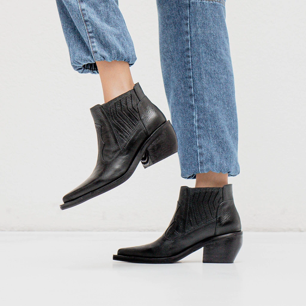 La Bota Lirio está confeccionada en cuero genuino, ofreciendo una textura suave, resistente y elegante. Su diseño combina un estilo moderno con líneas minimalistas y una horma estilizada que realza cualquier look.