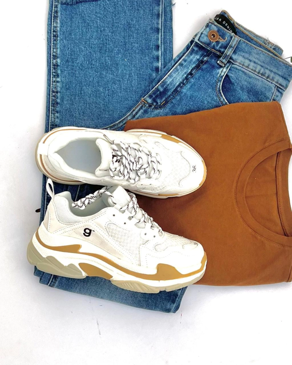 Las Gummi Balen llegan en color blanco con detalles en beige para un estilo fresco, moderno y versátil. Confeccionadas en material 100% vegano, ofrecen resistencia y confort sin el uso de cuero animal, ideales para un look urbano y actual que refleja una elección consciente.